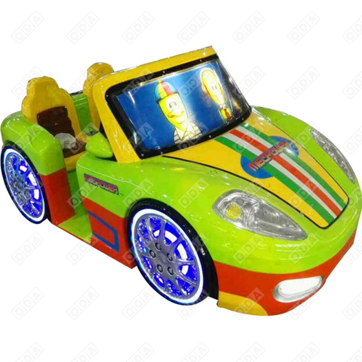 Детская качалка в виде машинки. Автомат с видеоигрой, одним рулем и двумя сиденьями. Могут играть двое детей.