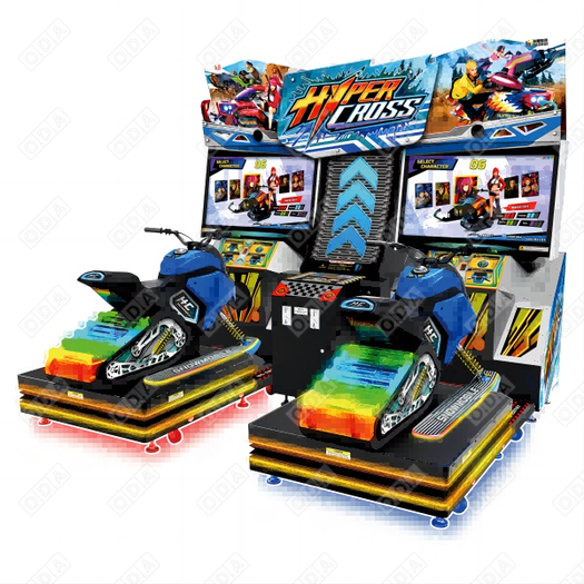 Гонки на снегоходах с 3-d подвижной системой. Обдув ветром во время игры, на выбор 10 трасс, 5 персонажей, кнопка ускорения, камера, снимающая игрока перед игрой, возможность объединять до 4-х аппаратов. ЖК монитор 42''.