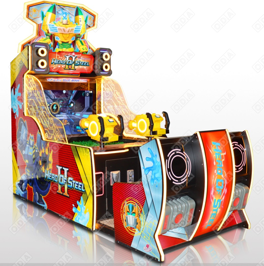 Обновленная версия популярного аппарата. Задача стрелять водой по экрану по наступающим фантастическим животным и монстрам. Могут играть два игрока.
