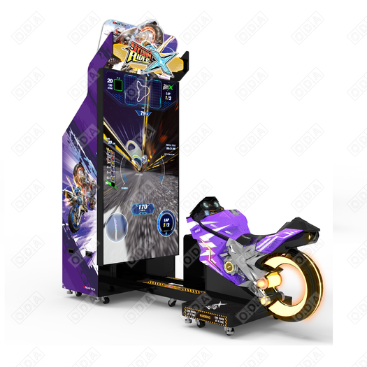 Футуристический корпус с переливающейся динамической светодиодной подсветкой. 4 уникальных типа мотоциклов и трасс. Огромный монитор 85" с разрешением видео 4K. Возможность подключения до 4-х аппаратов.