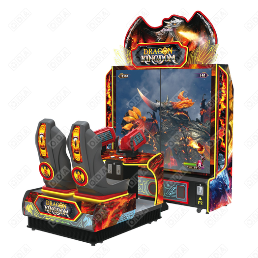 Стрельба из пулеметов по драконам. Сиденье с вибрацией и пулеметы с отдачей делают игру еще более увлекательной.